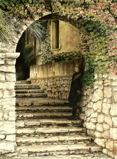 "In the Shade of the Arch" - watercolor - 20"x15"